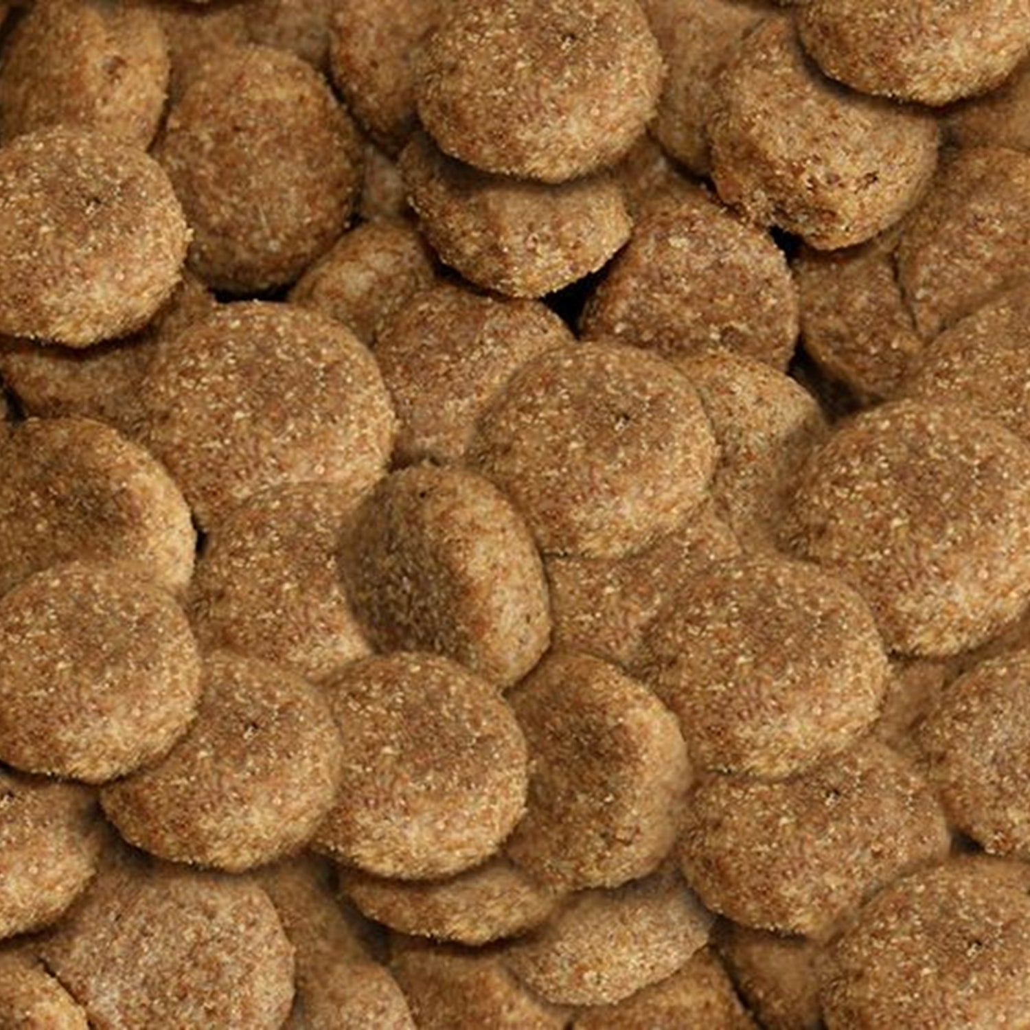 It contains 18% protein, 7% fat and wholegrain cereals for slow energy release. No added artificial colours, flavours or sugars as standard.