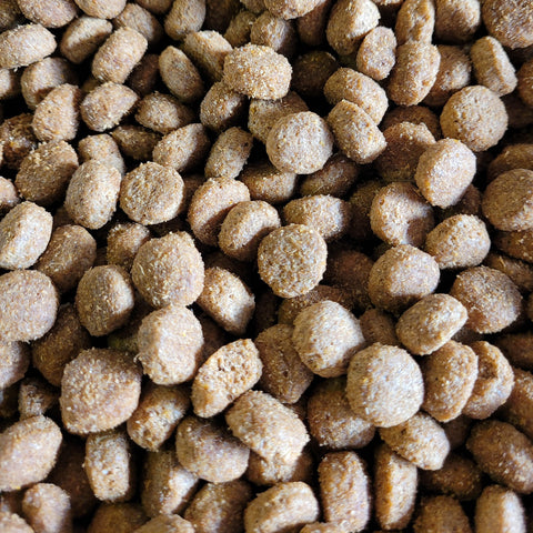 A sensitive recipe excluding wheat with extra chicken (14%). Crunchy biscuits made with whole grain cereals and higher levels of chicken coated with poultry fat and gravy for extra flavour.