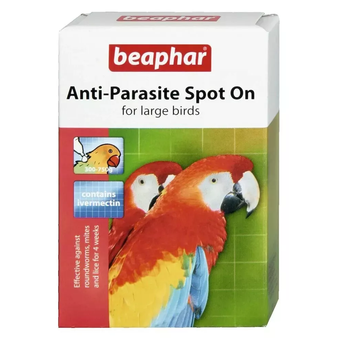 Beaphar Anti-Parasite Spot-on for Large Birds is suitable for Parrots and other large birds.