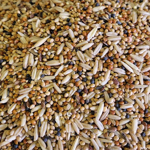 Yellow Millet, Naked Oats, Red Millet, Panicum Millet, Black Rapeseed, Linseed, Nyjer Seed, Japanese Millet and Orange Flavour