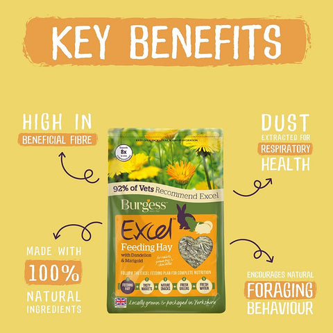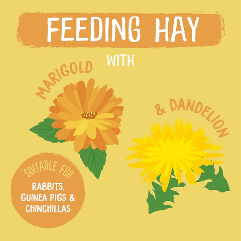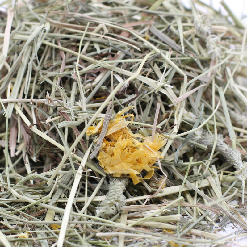 A sweet smelling Timothy Hay with Dandelion and Marigold that’s high in Beneficial Fibre.