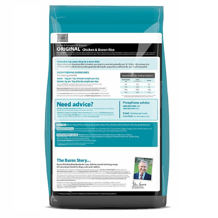 Made to John Burns’ original recipe the Original Chicken & Brown Rice contains everything an adult dog needs for lifelong health and vitality.