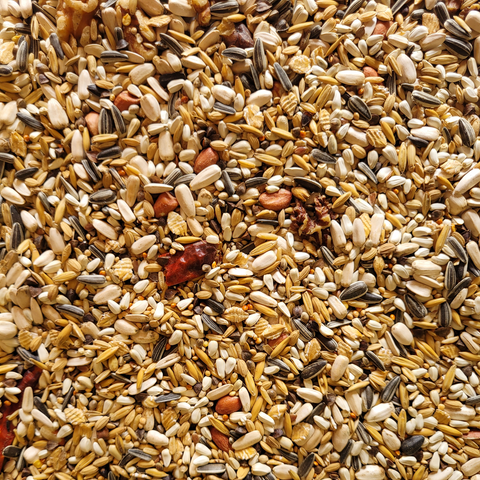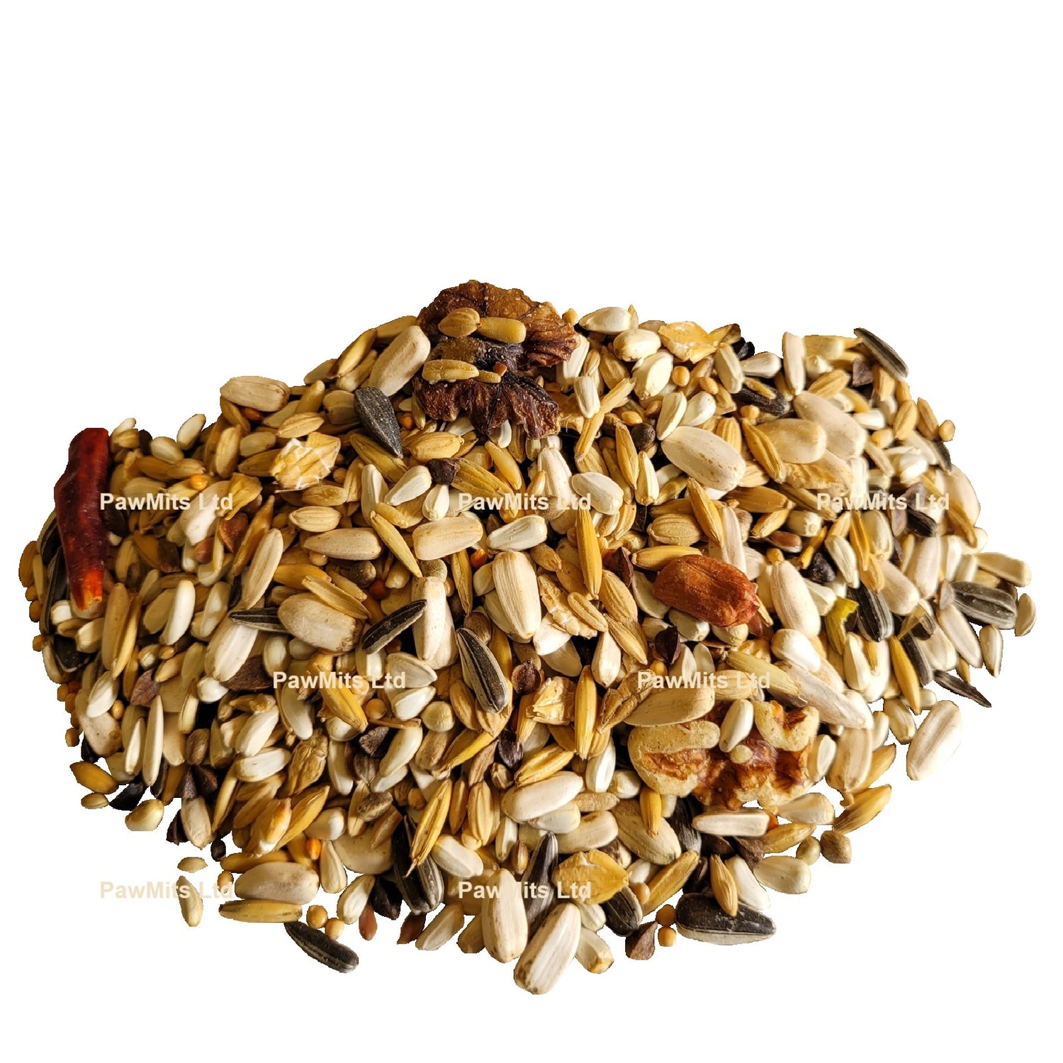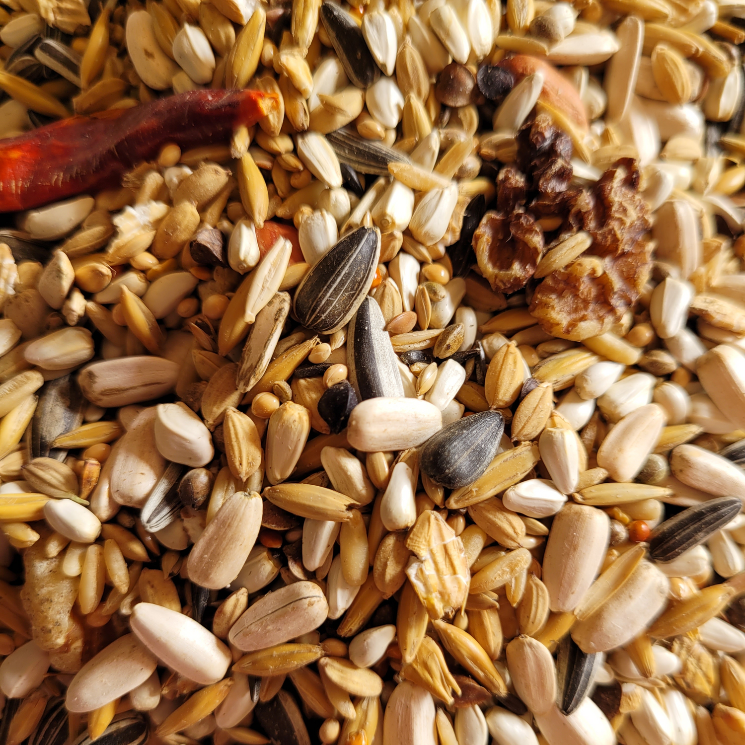 Safflower, Oats, Paddy Rice, White Sunflower, Small Sunflower, Groats, Buckwheat, Micronised Barley, Millet, Canary Seed, Hemp, Linseed, Red Millet, Walnuts, Peanuts, Niger, Red Chilli, Soya Oil.