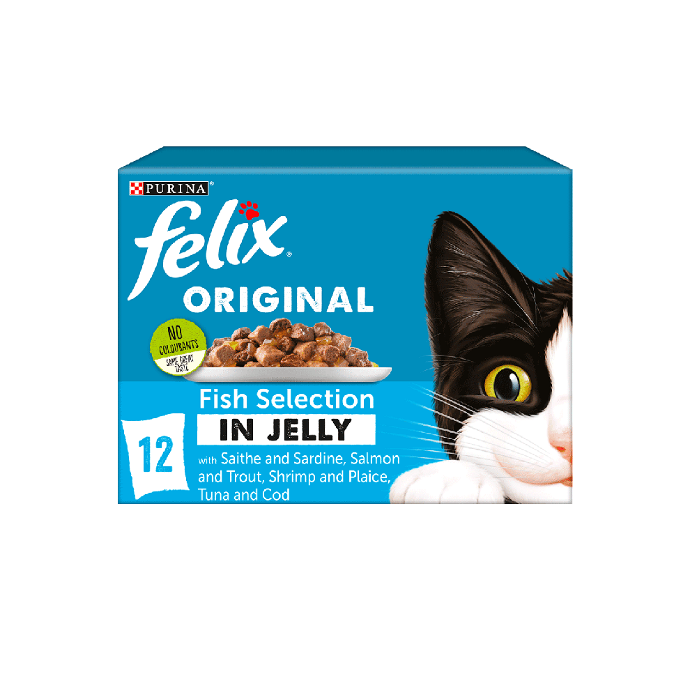 The ultimate selection of cat food for fish-loving felines! FELIX Adult Cat Fish Selection in Jelly provides your adult cat with a fish feast they can enjoy whilst receiving 100% of their daily needs through the high quality nutrition we include.