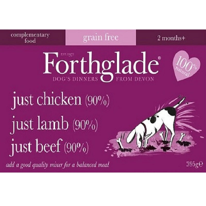 A highly digestible complementary dog food with a high meat content, and added healthy veggies and mineral. Forthglade Grain Free is a 100% natural, complementray wet pet food for dogs.