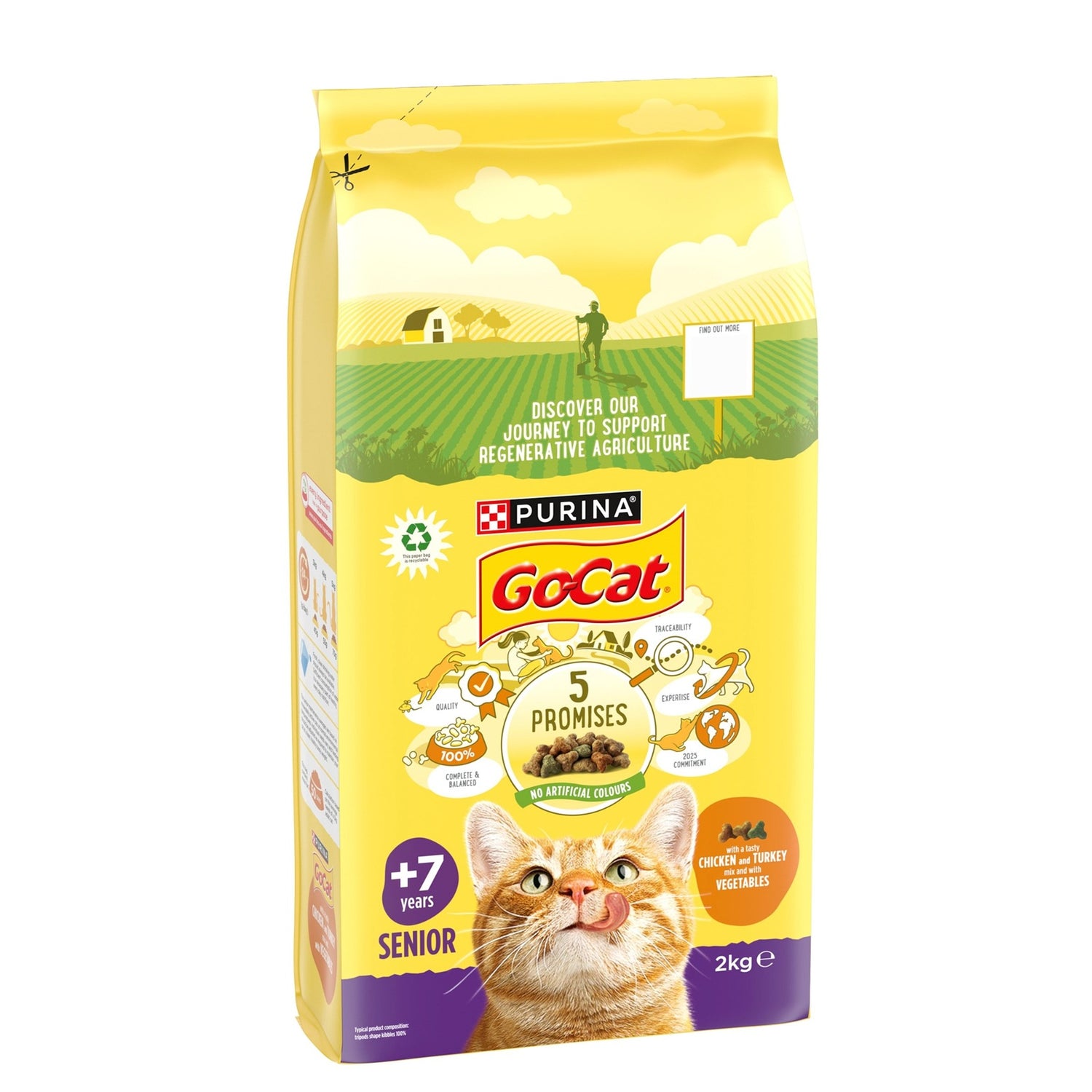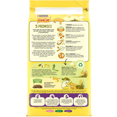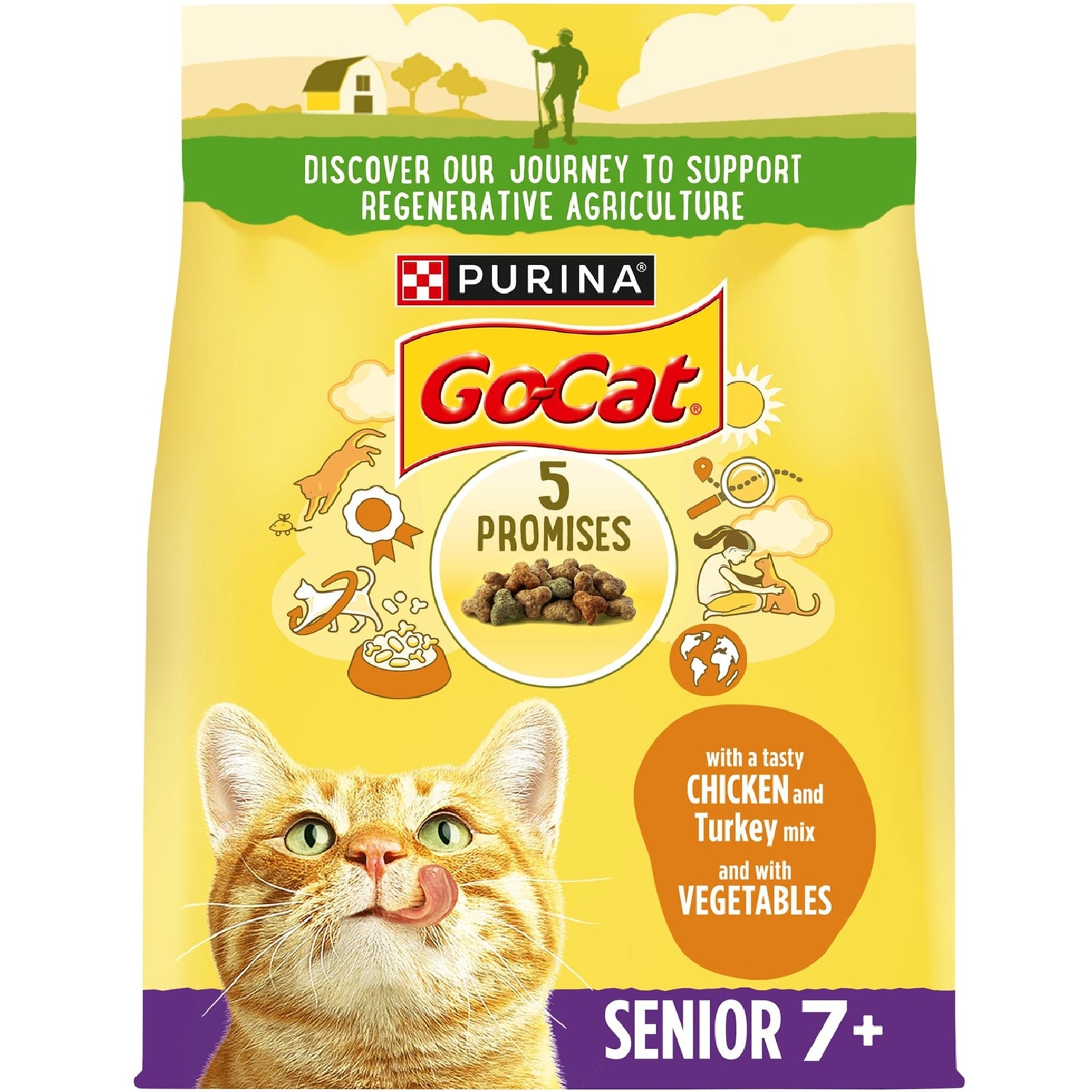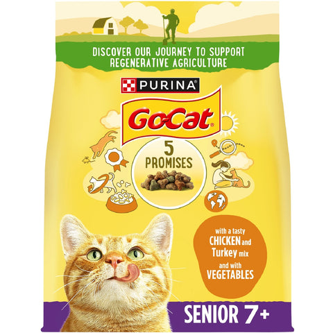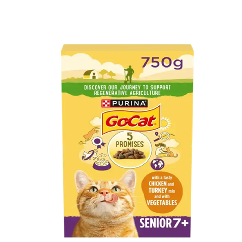 Go-Cat Senior 7+ formula for cats over 7 years is carefully balanced to meet the needs of older cats who burn less energy and require fewer calories from their food.