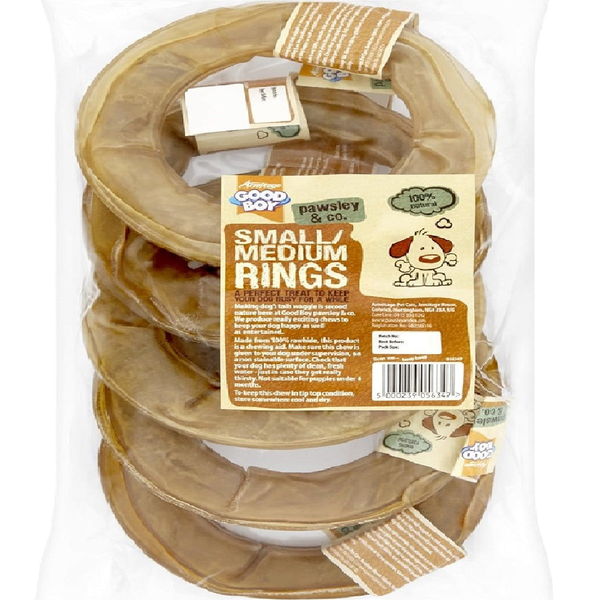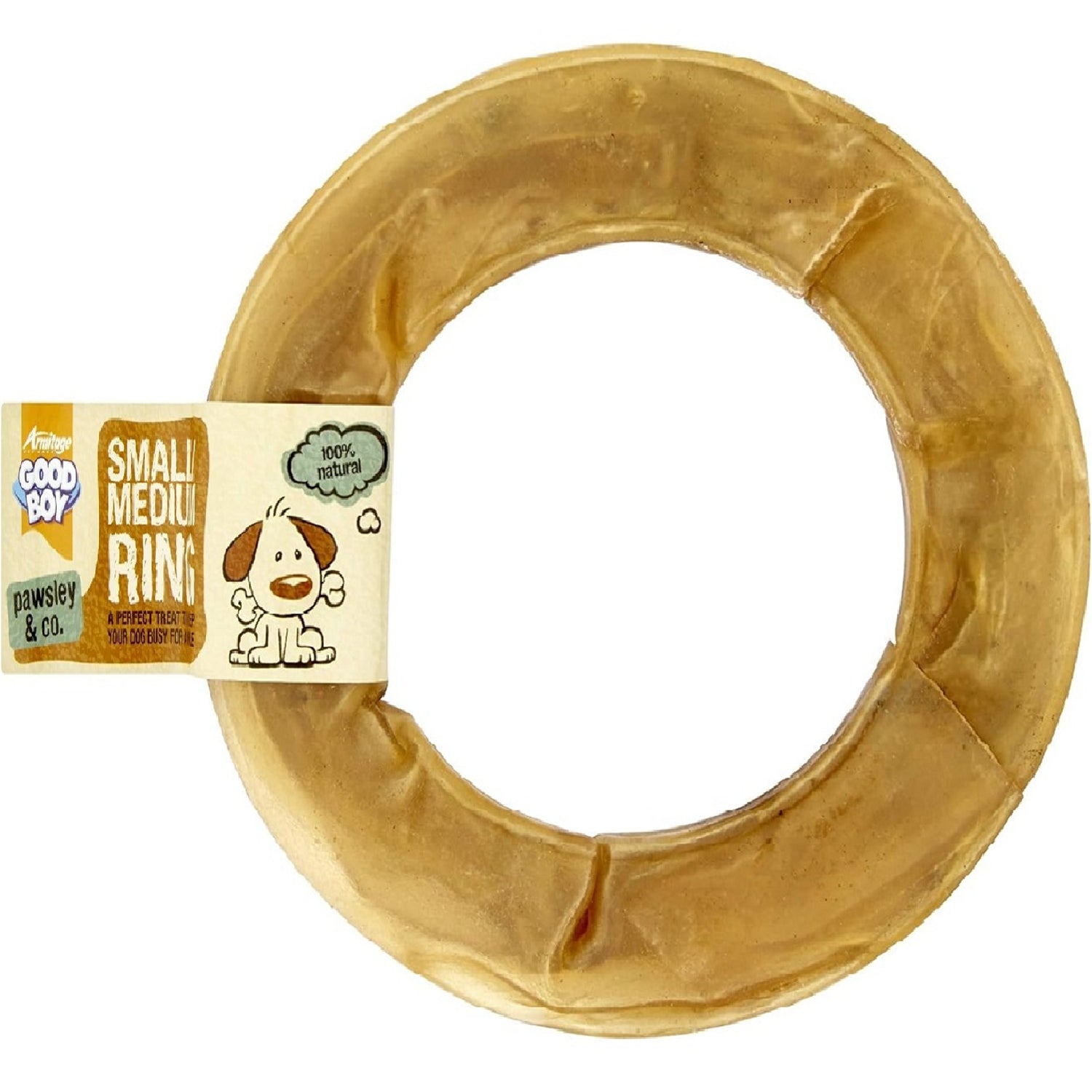 Made from chewy rawhide and my playful ring shape is fantastic when it comes to keeping your dog occupied.