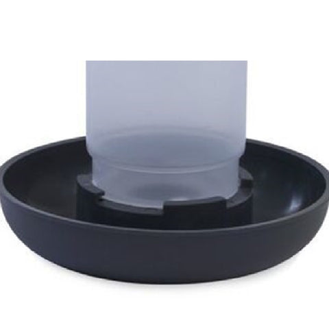 A sleek, contemporary, robust water drinker in grey featuring an easy turn base. The design incorporates a bird friendly tray to enable birds to comfortably drink water which is essential to their well-being.