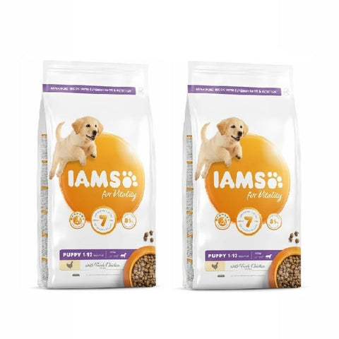 IAMS for Vitality for large breed puppies is a 100% complete and balanced expert nutrition for your pup to enjoy and thrive on. Our new and improved tasty puppy recipe with fresh chicken is based on high quality animal protein, carefully selected to support your puppy’s 7 signs of healthy vitality. Strongly believing that puppies should be healthy, active and full of vitality, our tasty recipe contains 81% animal protein (out of total protein).