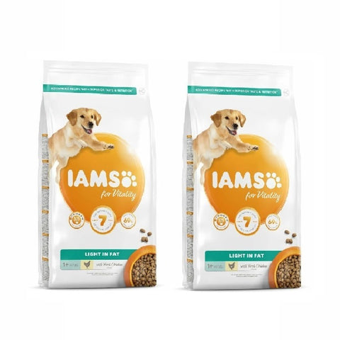 IAMS for Vitality Light in fat for all breed adult and senior dogs is a 100% complete and balanced expert nutrition for your pet to enjoy and thrive on. Our new and improved tasty recipe with fresh chicken is based on high quality animal protein, carefully selected to support your dog’s 7 signs of healthy vitality. Strongly believing that dogs should be healthy, active and full of vitality, our tasty recipe contains 69% animal protein (out of total protein).