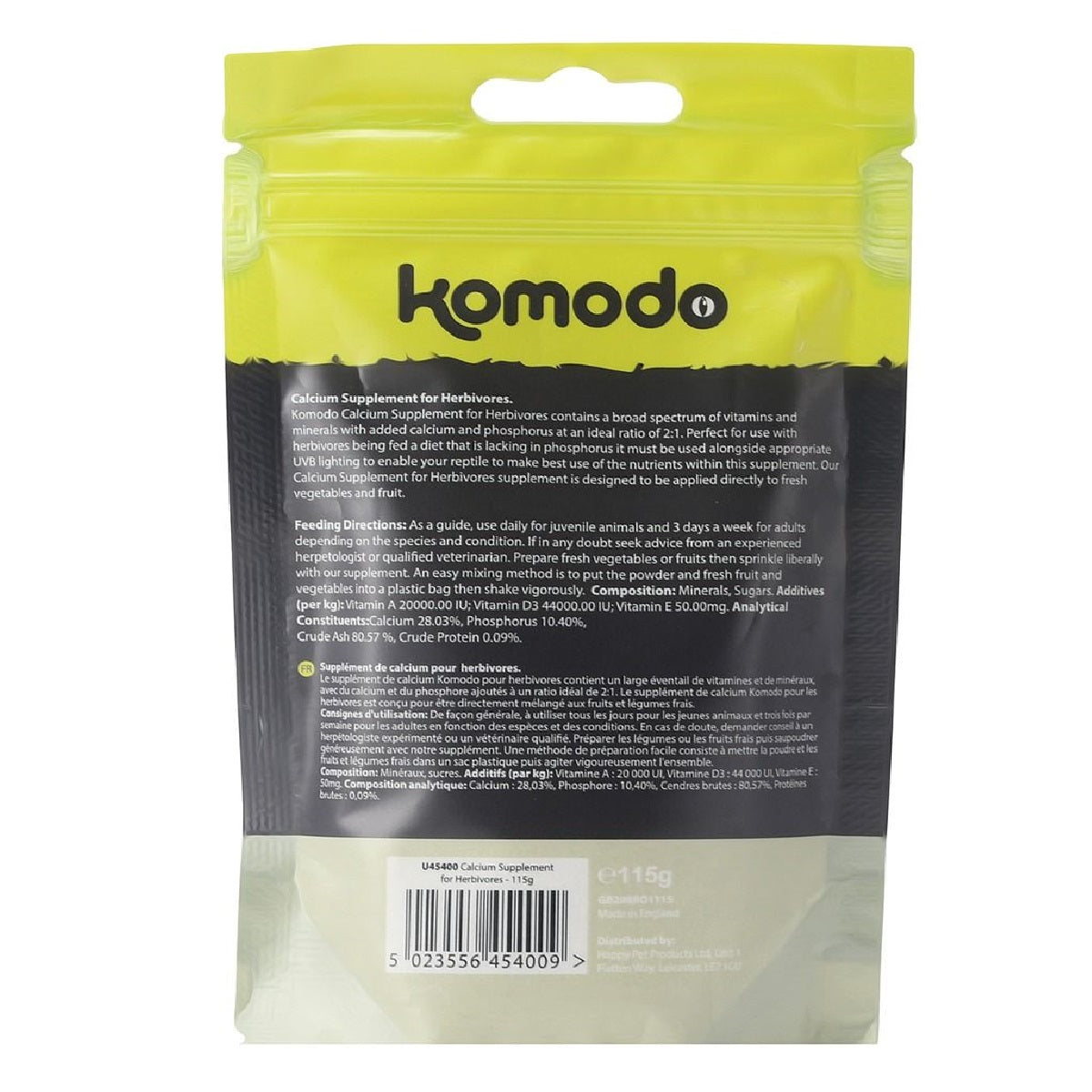 Komodo Calcium Supplement for Herbivores contains a broad spectrum of vitamins and minerals with extra calcium and phosphorus to help provide a balanced diet for herbivorous animals.