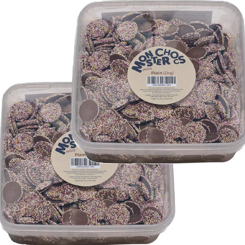 Monster Mini Choc dog treats are delicious, dog safe flavoured chocolate drops, topped with sprinkles. Serve as a reward, 1-2 drops per day.