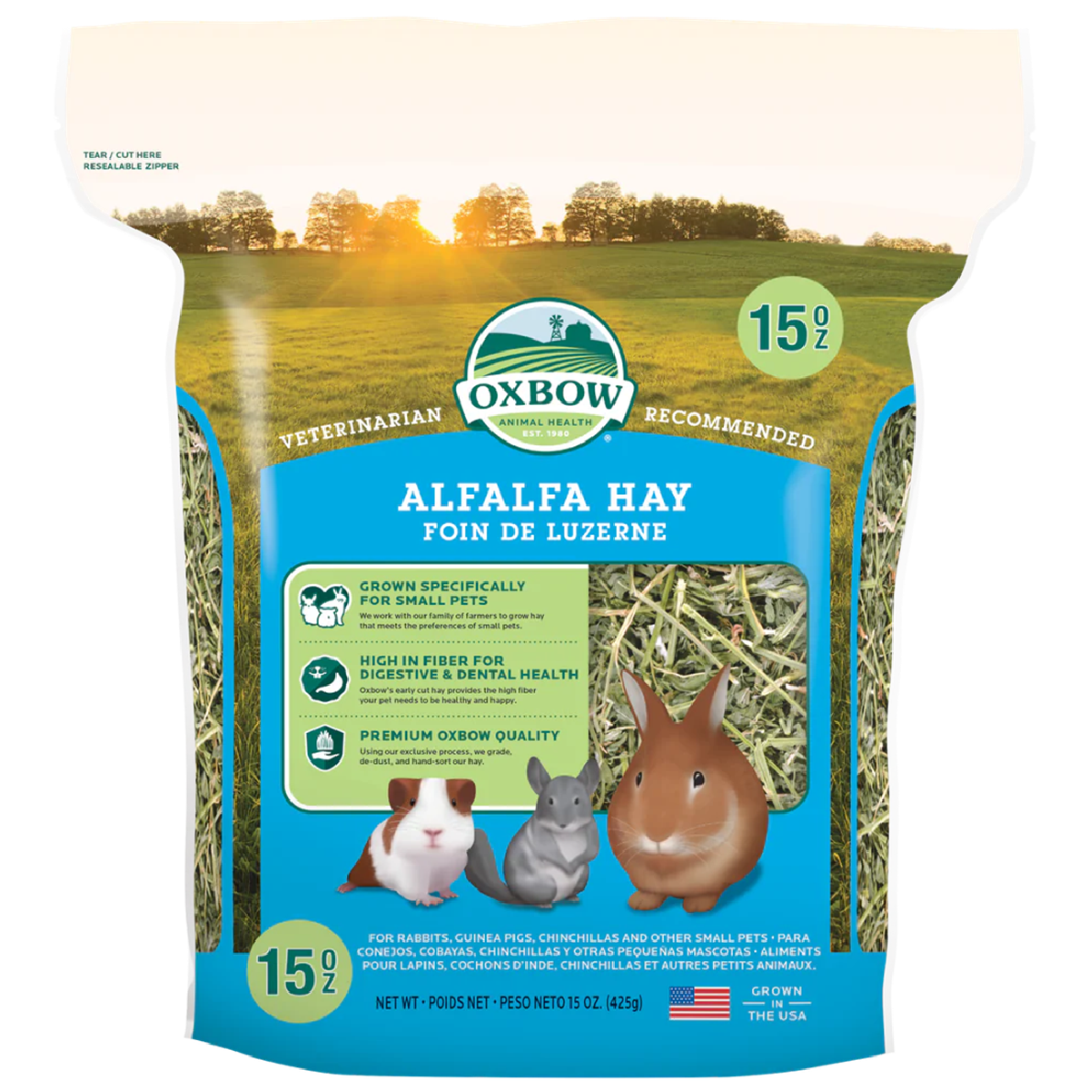 Oxbow Alfalfa Hay is a high fibre legume hay with the same long strand fibre found in grass hays, but with more protein, energy and calcium.
