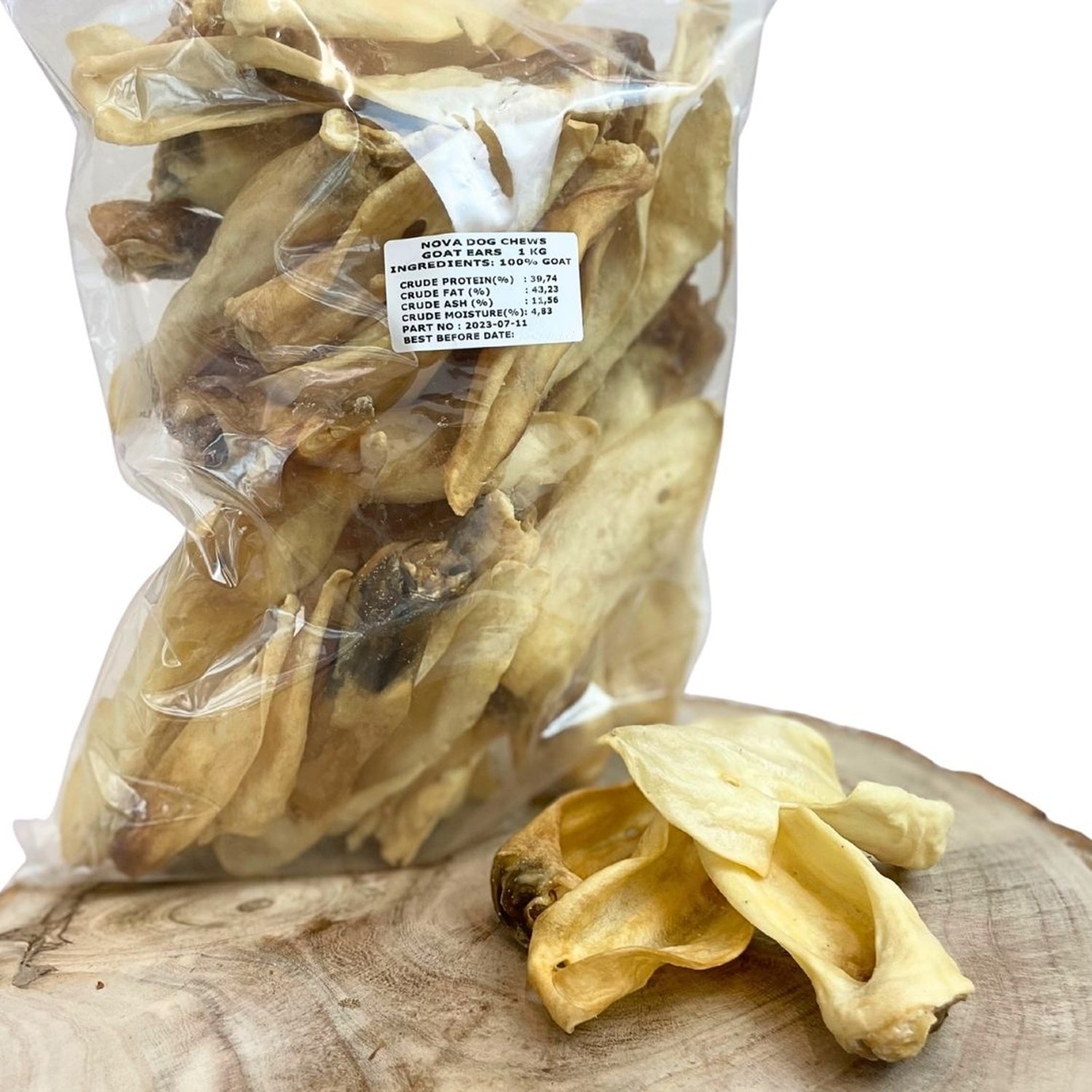 Goat ears are high in proteins, aiding muscle and tissue repair. Low in far, high in collagen for healthy coats and skin, high in glucosamine and chondroitin for promoting good joint health.
