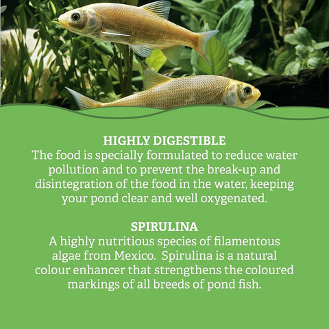 Pets Choice Pond Sticks are a complete staple food for all freshwater pond fish. The pellets are floating to encourage your fish to feed at the surface of the pond, for both for your enjoyment and to prevent the build up of lost food at the bottom of the pond.