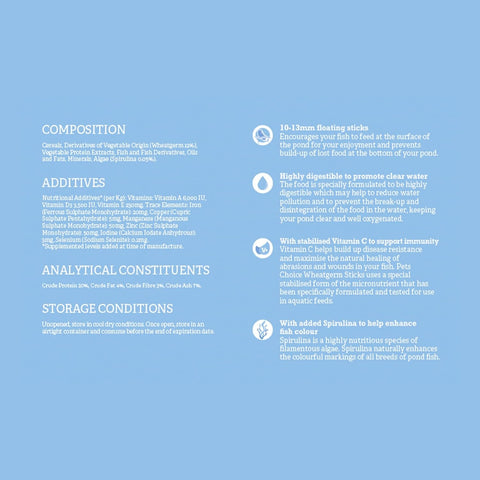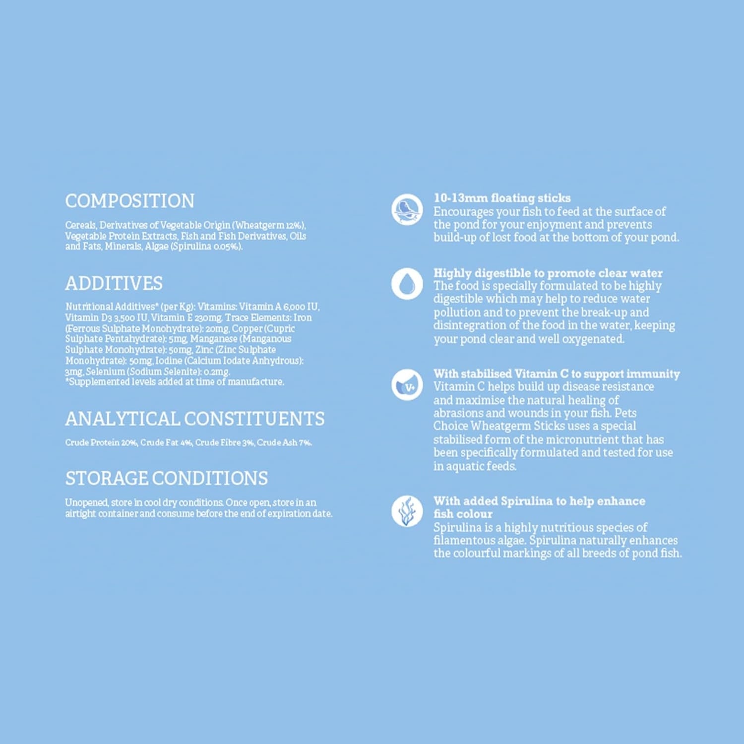 Pets Choice Wheatgerm Pellets are a complete and balanced food for all freshwater pond fish made with highly digestible wheatgerm protein.