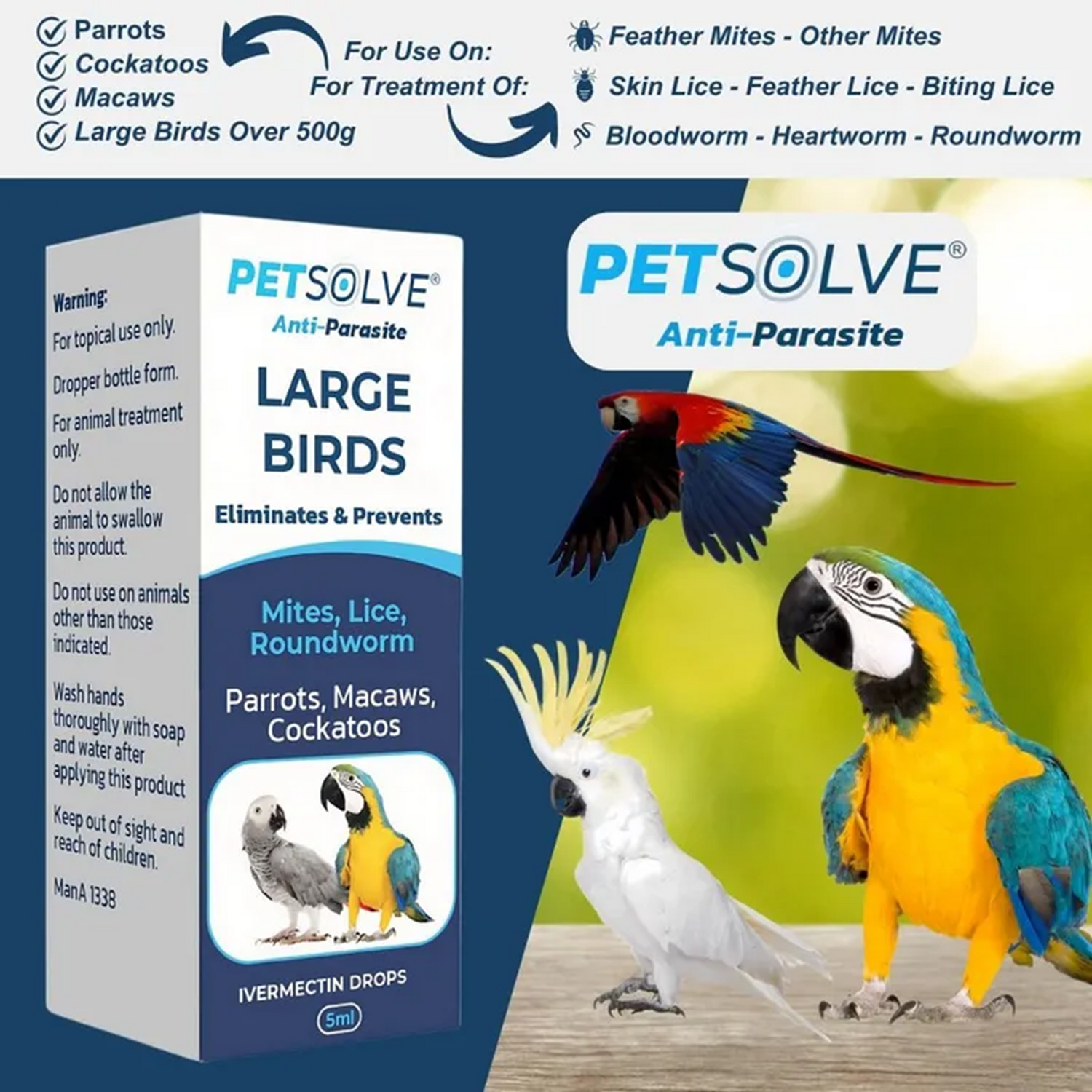 PETSOLVE - Anti-Parasite Large Birds