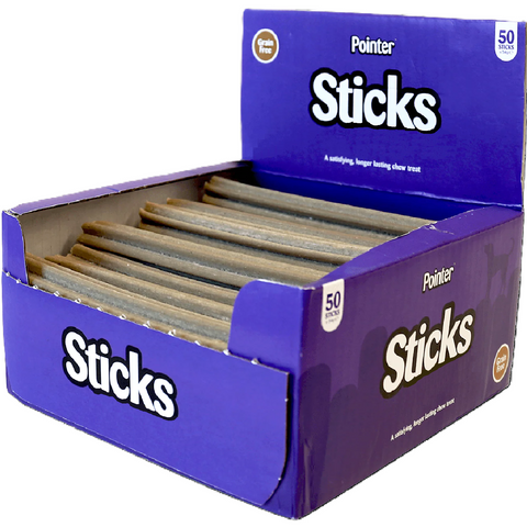 Introducing our new look Pointer Grain Free Sticks in four select flavours, they are a long lasting delicious chewy treat in a new and improved shape.