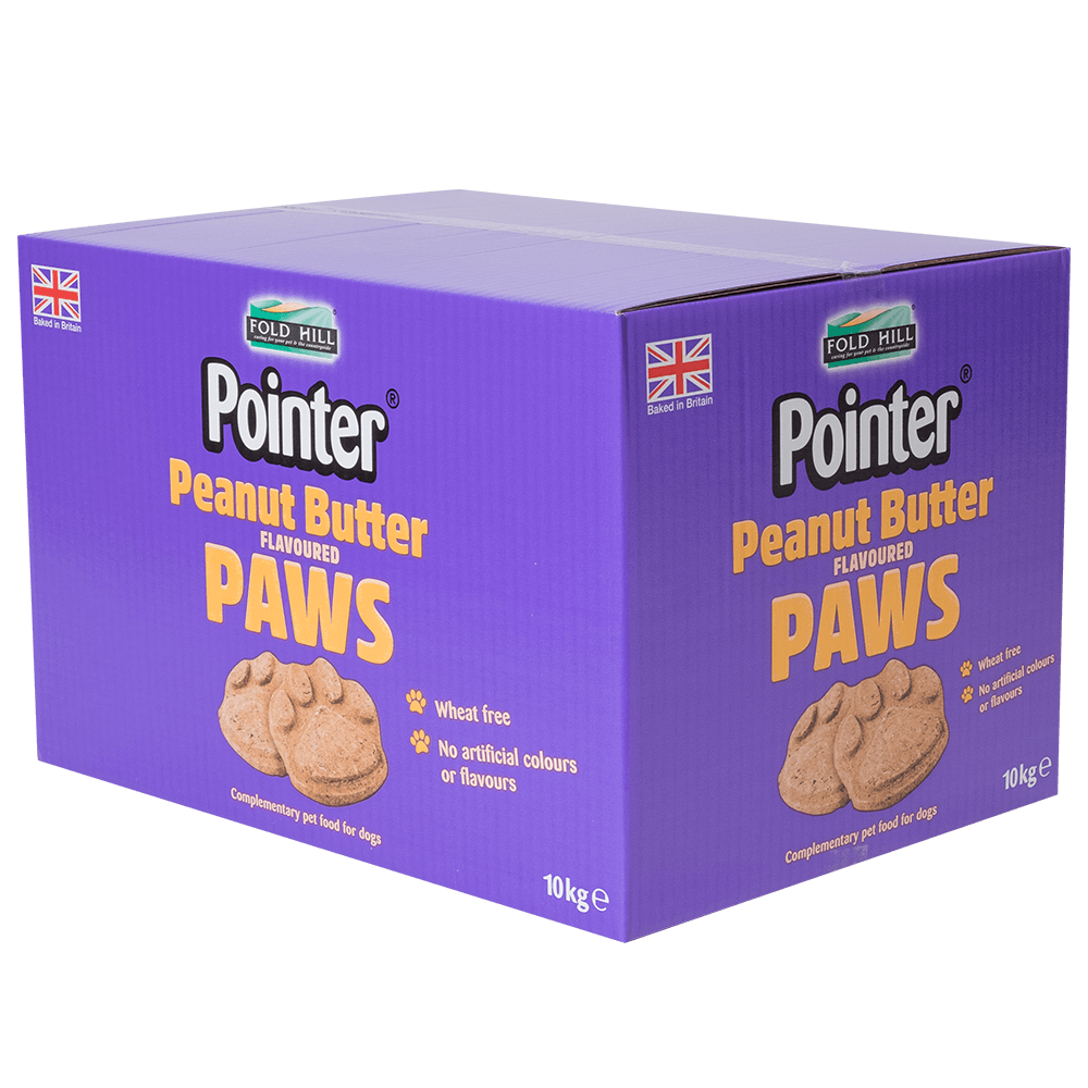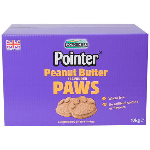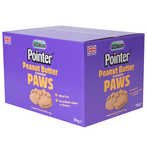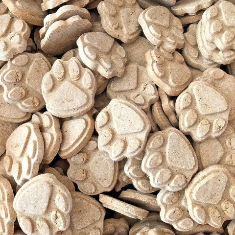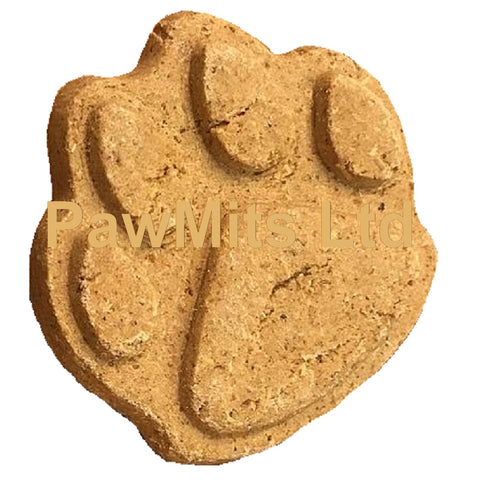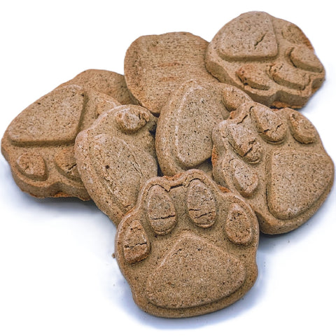 Wheat Free Peanut flavoured biscuit treats in shape of a doggie paw.