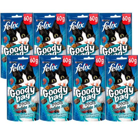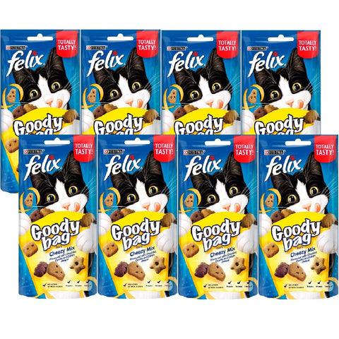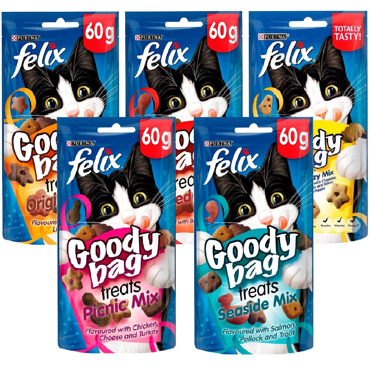 Felix Goody Bag – containing an irresistible, colourful mix of treats that are full of enticing aromas, delicious flavours and appealing textures. Felix Goody Bag all contain proteins, vitamins and omega 6 fatty acids to help your cat live a healthy and happy life.