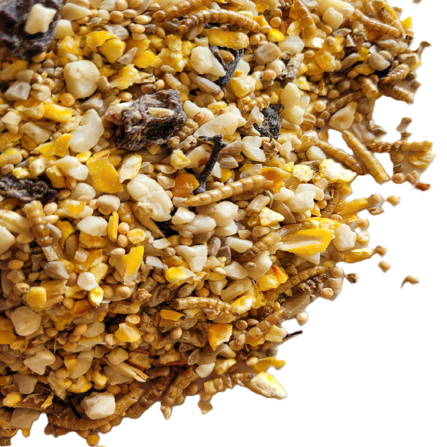| Main Ingredients | Small Seeds, Sunflowers, Peanuts, Raisins, Mealworms |