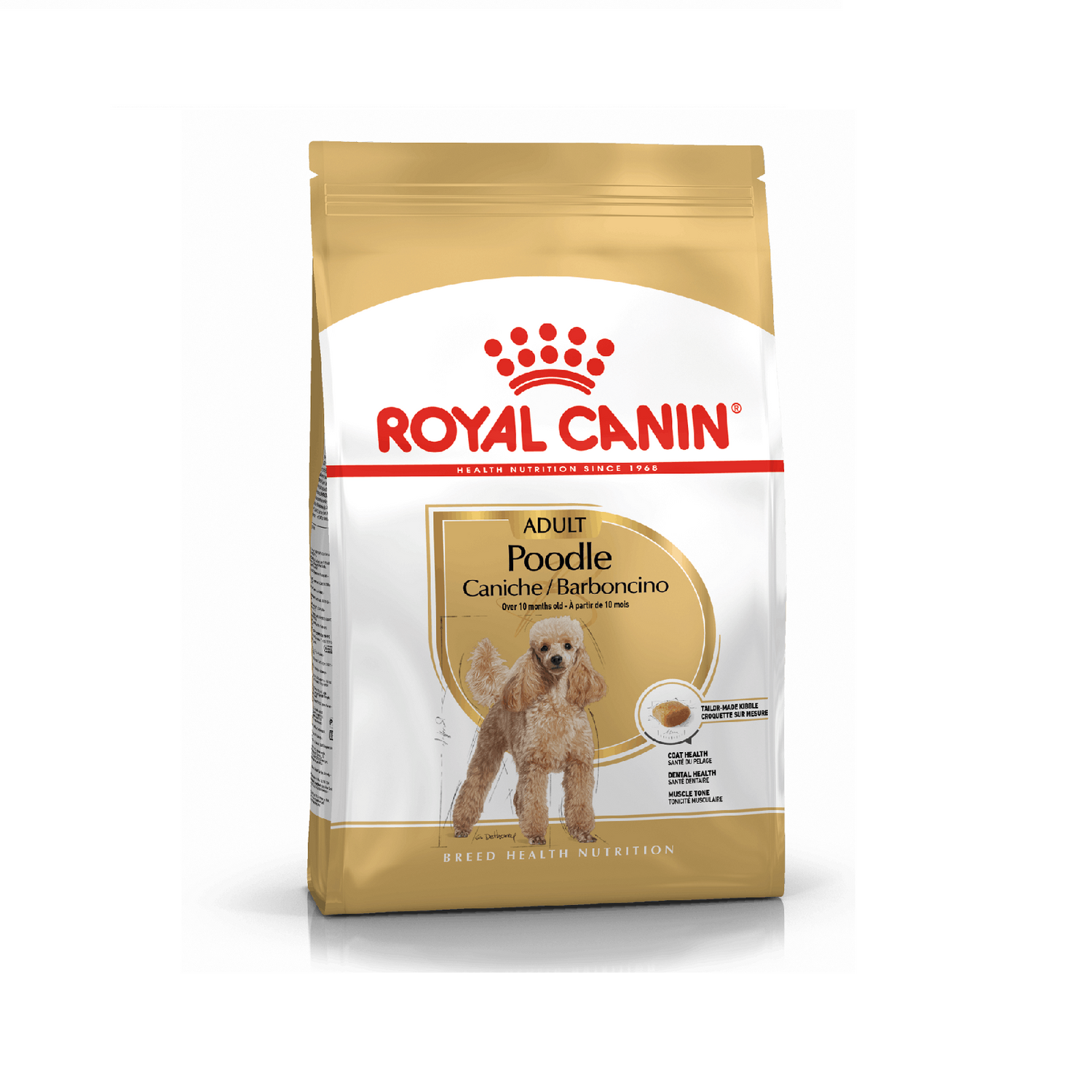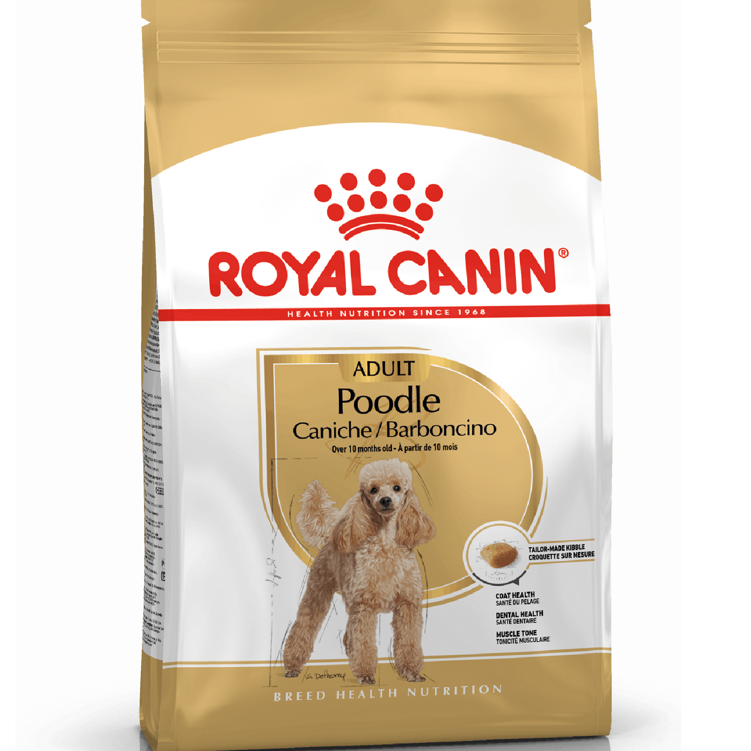 Exclusive kibble design: The kibble’s shape, size, texture and formula are specially adapted for the Poodle.
