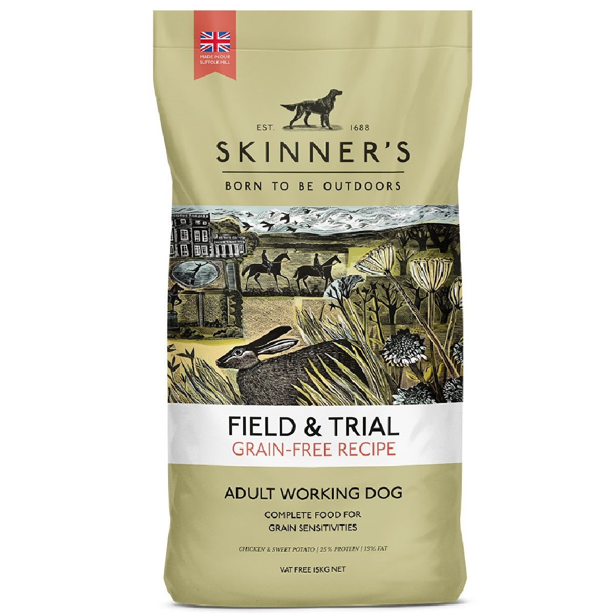 Skinner’s Field & Trial Chicken and Sweet Potato is a complete, grain-free dog food, specially developed and formulated to support working dogs who are regularly working at a moderate activity intensity. Skinner’s Chicken and Sweet Potato dry dog food has been carefully developed to support the energetic requirements of a range of active dogs, while removing grain-based sources of carbohydrates.
