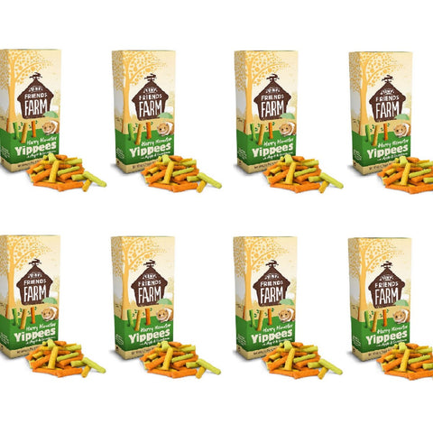 Wheat Flour, Oatmeal, Soy Oil, Whole Wheat Flour, Sugar, Flaked Maize (9% in yellow sticks), Carrots, Apple (9% in green sticks)