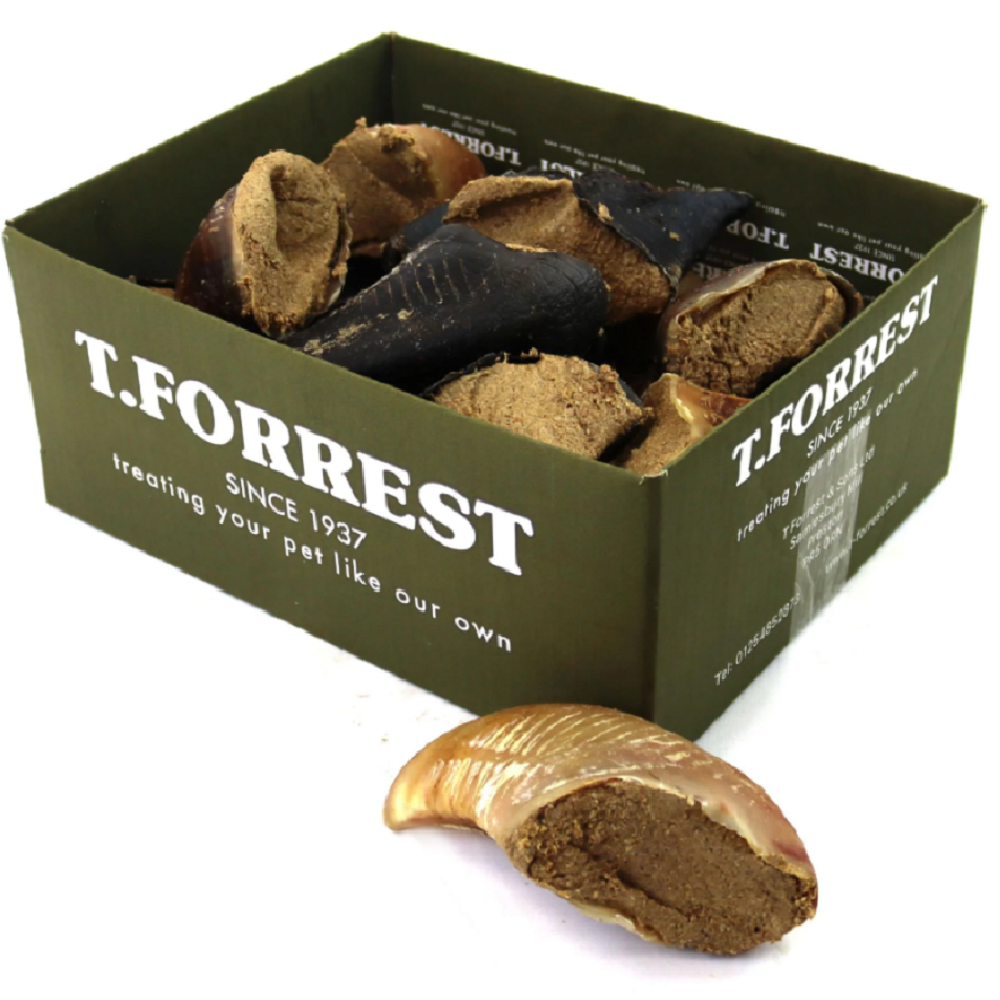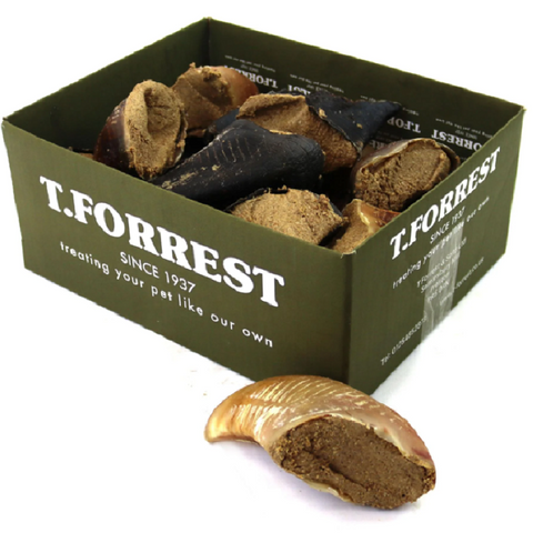 T.forrest meat filled hooves are firstly air dried in our drying ovens and then packed full of tasty high protein, high calcium meat. The result is a protein packed, 100% natural british dog treat that is extra durable and will keep your dogs entertained for hours.