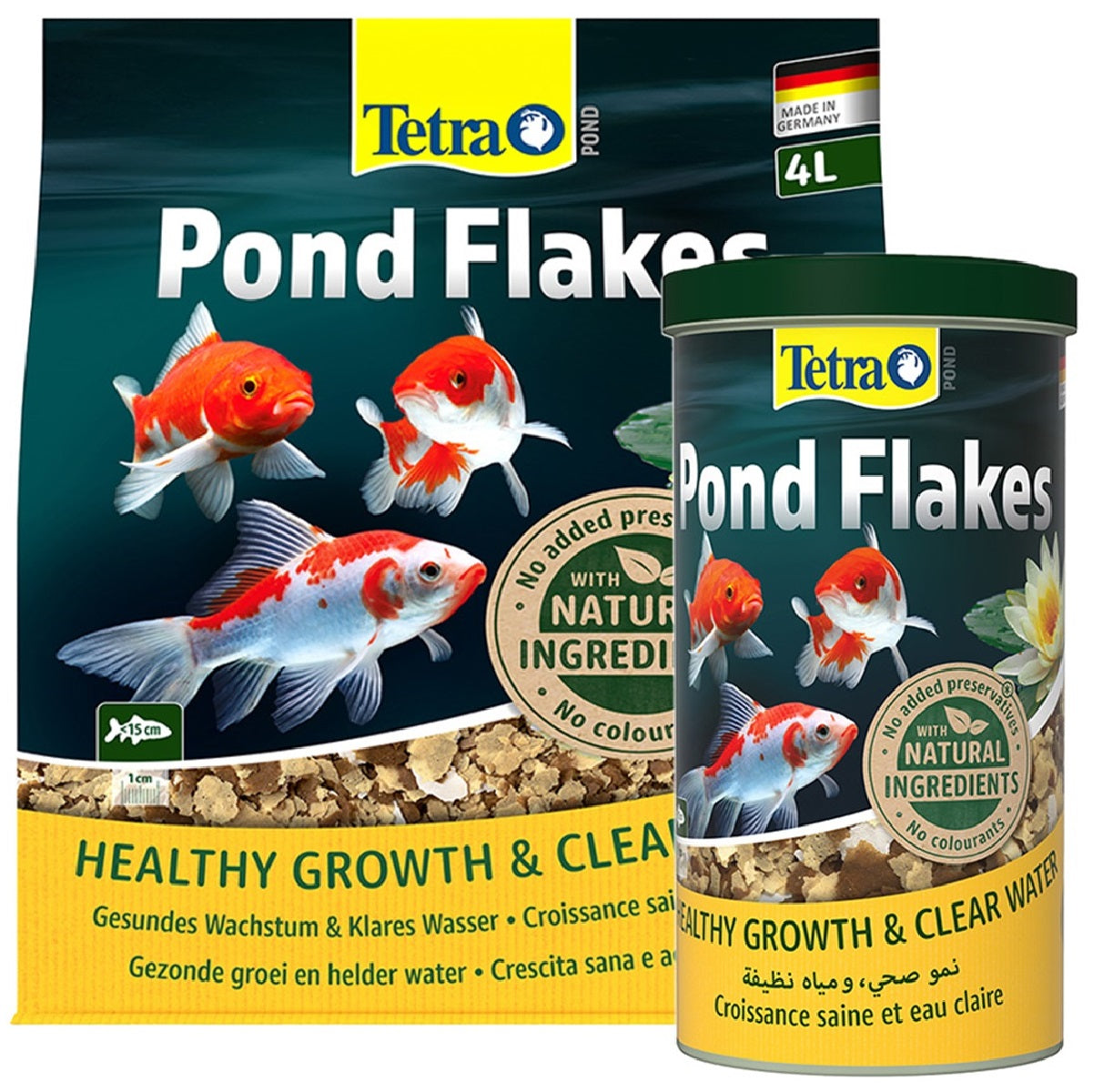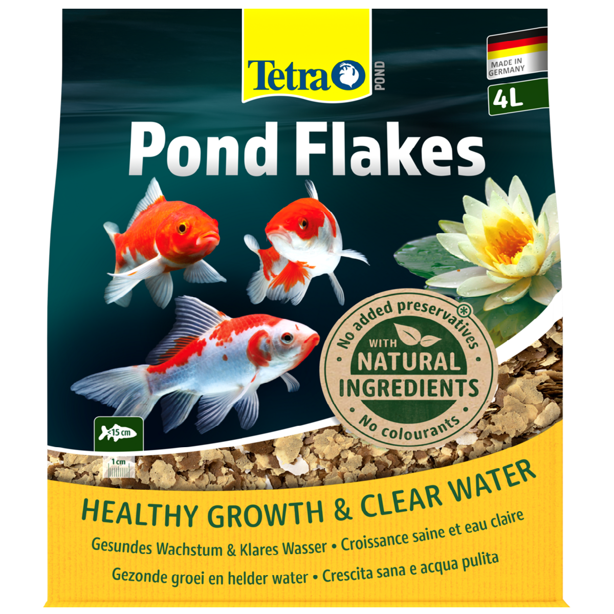 Tetra Pond Flakes provide all the nutrients necessary for a complete and biologically balanced diet for all pond fish. Our pond flakes contain a mixture of three flake varieties which distribute easily in the water, ensuring food reaches all the fish in your pond including the small, young or timid fish.