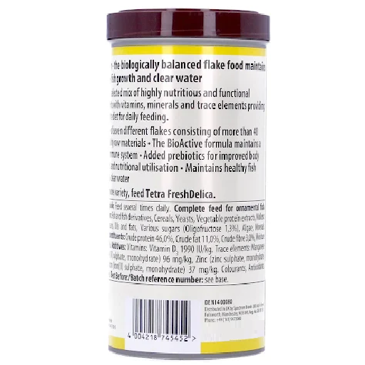 Complete food in the form of a flake mix with high quality, functional nutrients, providing a full diet for daily feeding of all ornamental fish. Supports healthy fish growth, vitality and colour vibrancy.