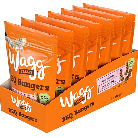 Wagg BBQ Bangers are oven baked, Semi Moist, Meaty Dog Treats with a smokey BBQ Aroma of Pork Sausages to tempt even the fussiest of dogs.