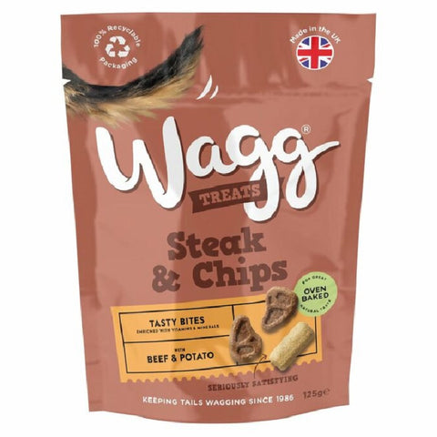 Wagg Steak & Chips Dog Treats are available in 125g resealable pack.